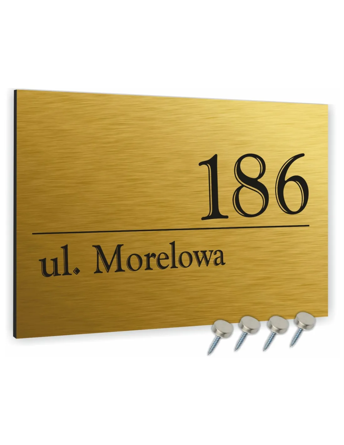 NUMER NA BUDYNEK dom Tabliczka INOX kolor złoty ALUMINIUM 3D 40x30 cm dibond