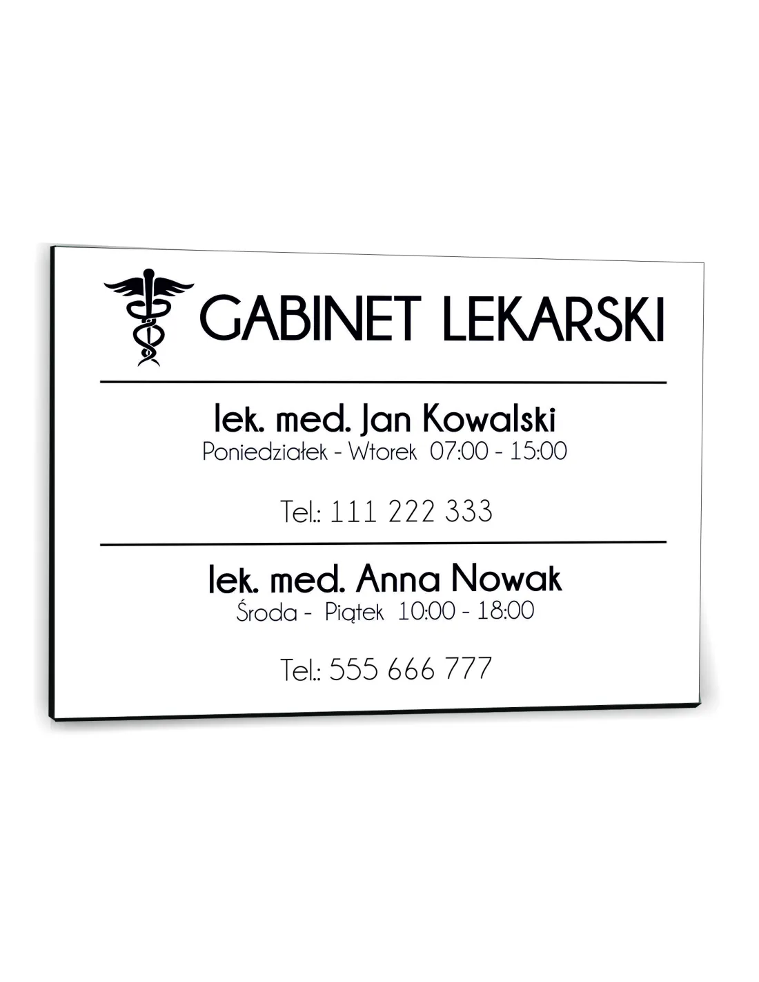 nadruk TABLICZKA biała 30x20 GABINET LEKARSKI nazwisko godziny otwarcia