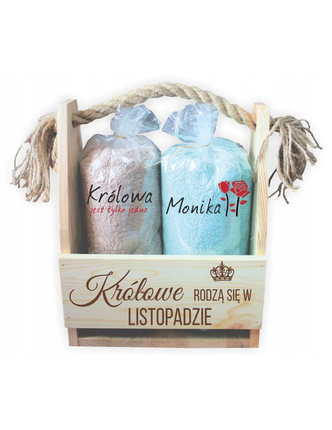 Zestaw 2 Ręczniki z haftem + skrzynka z grawerem