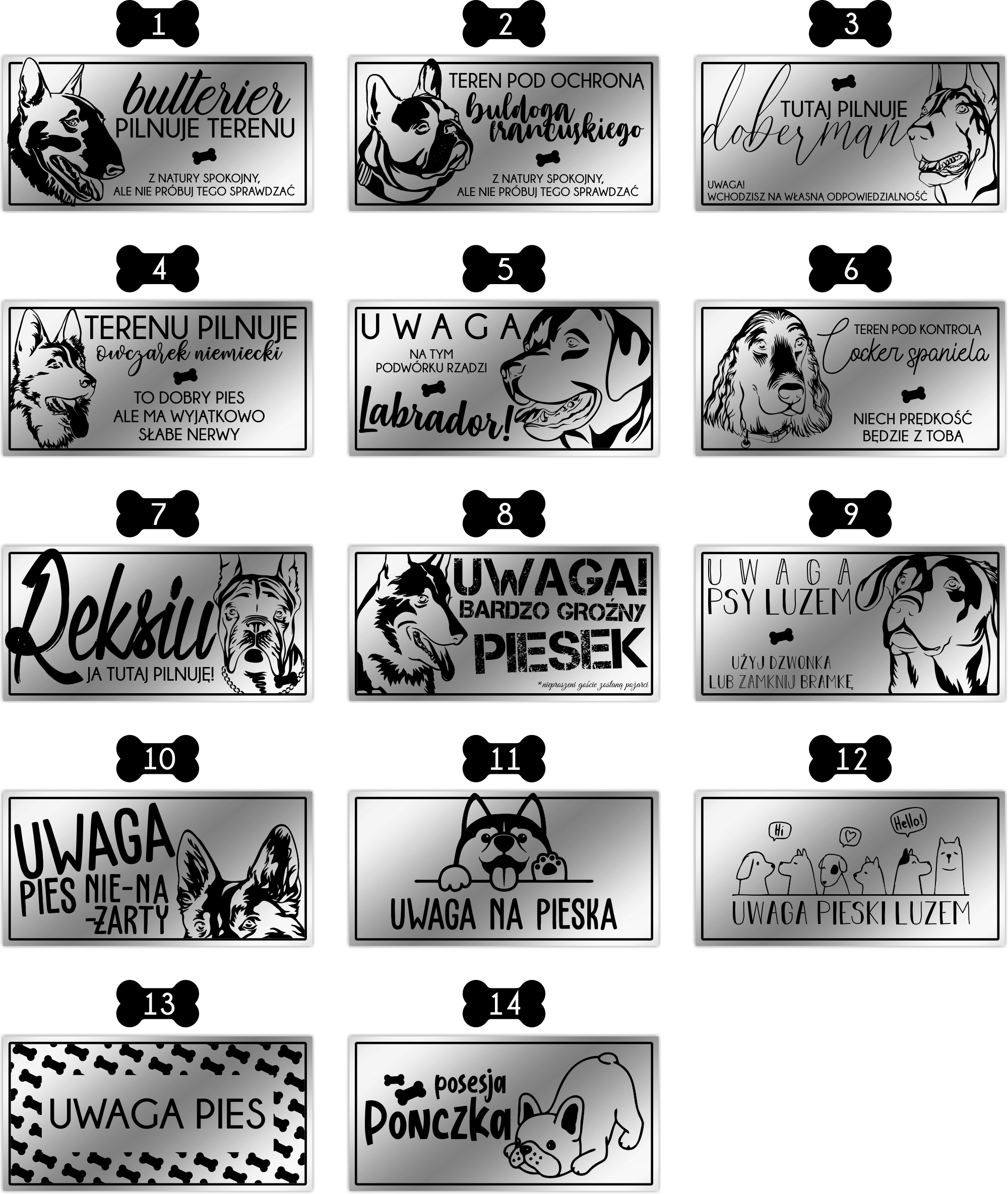 Przykładowe wzory graweru na tabliczkach: