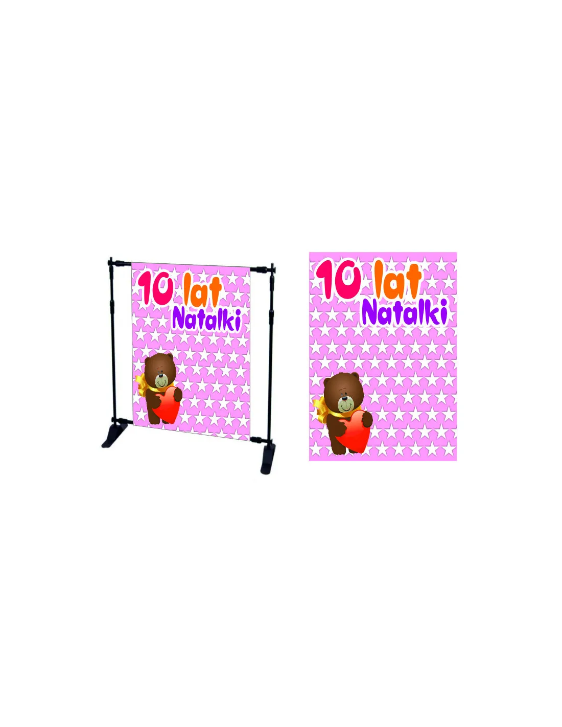 Na ściance fotograficznej istnieje możliwość zmiany napisów, grafik i kolorów. Po zakupie prosimy przesłać wytyczne dotyczące projektu.