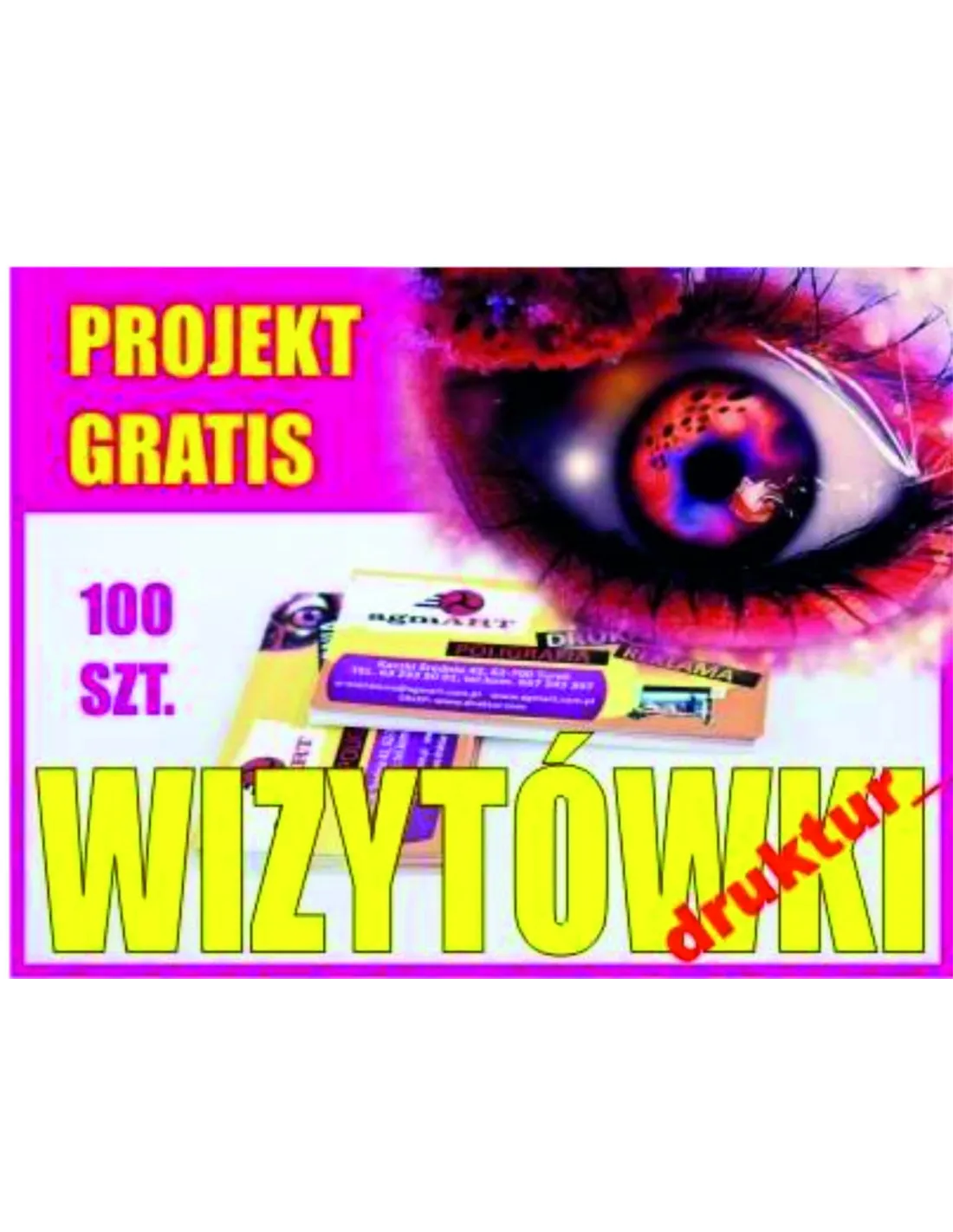 Wizytówki 100 sztuk - jednostronne + prosty projekt GRATIS