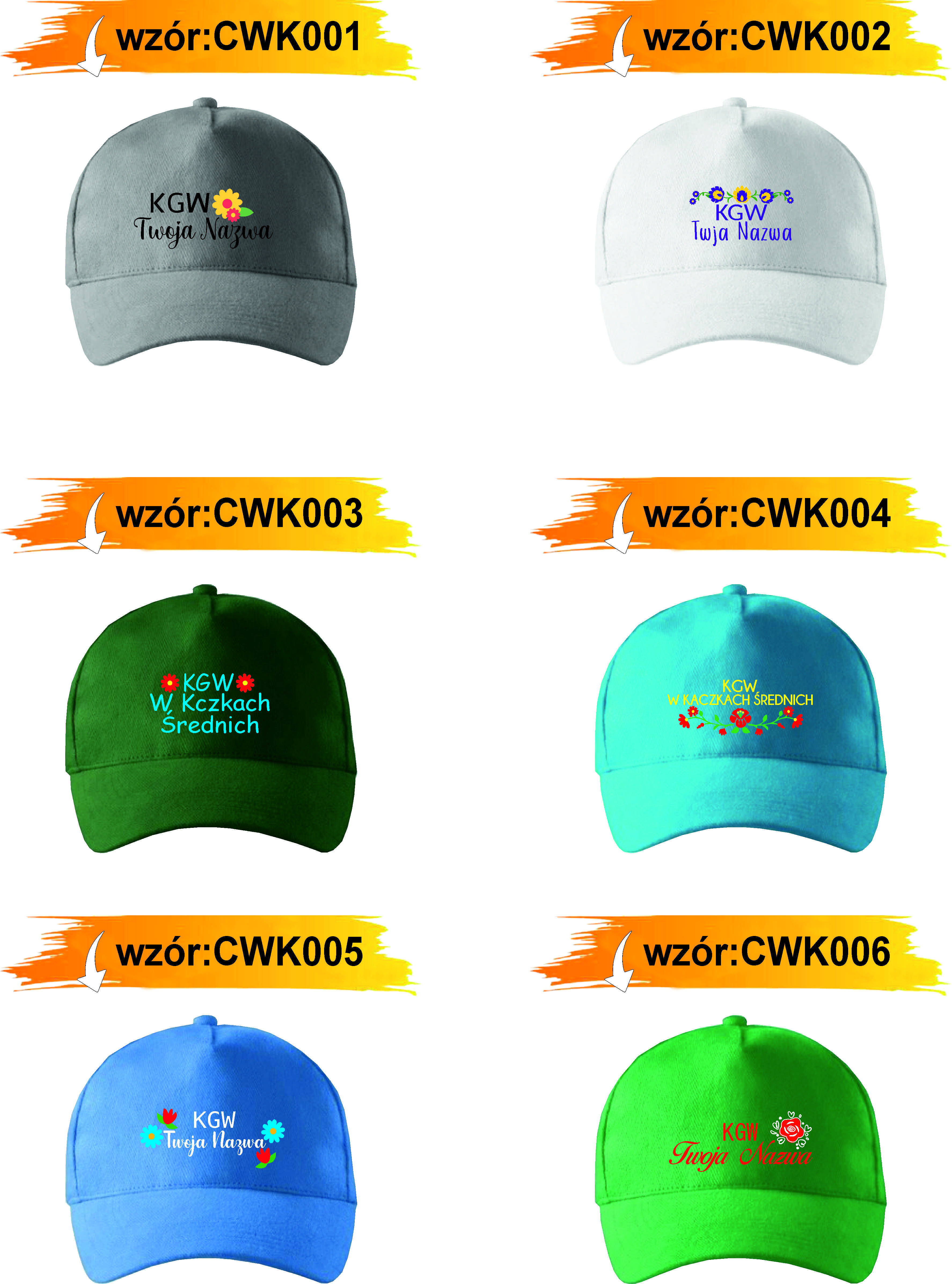 CZAPKA Z HAFTEM z daszkiem KGW koło gospodyń wiejskich + twój tekst grafika