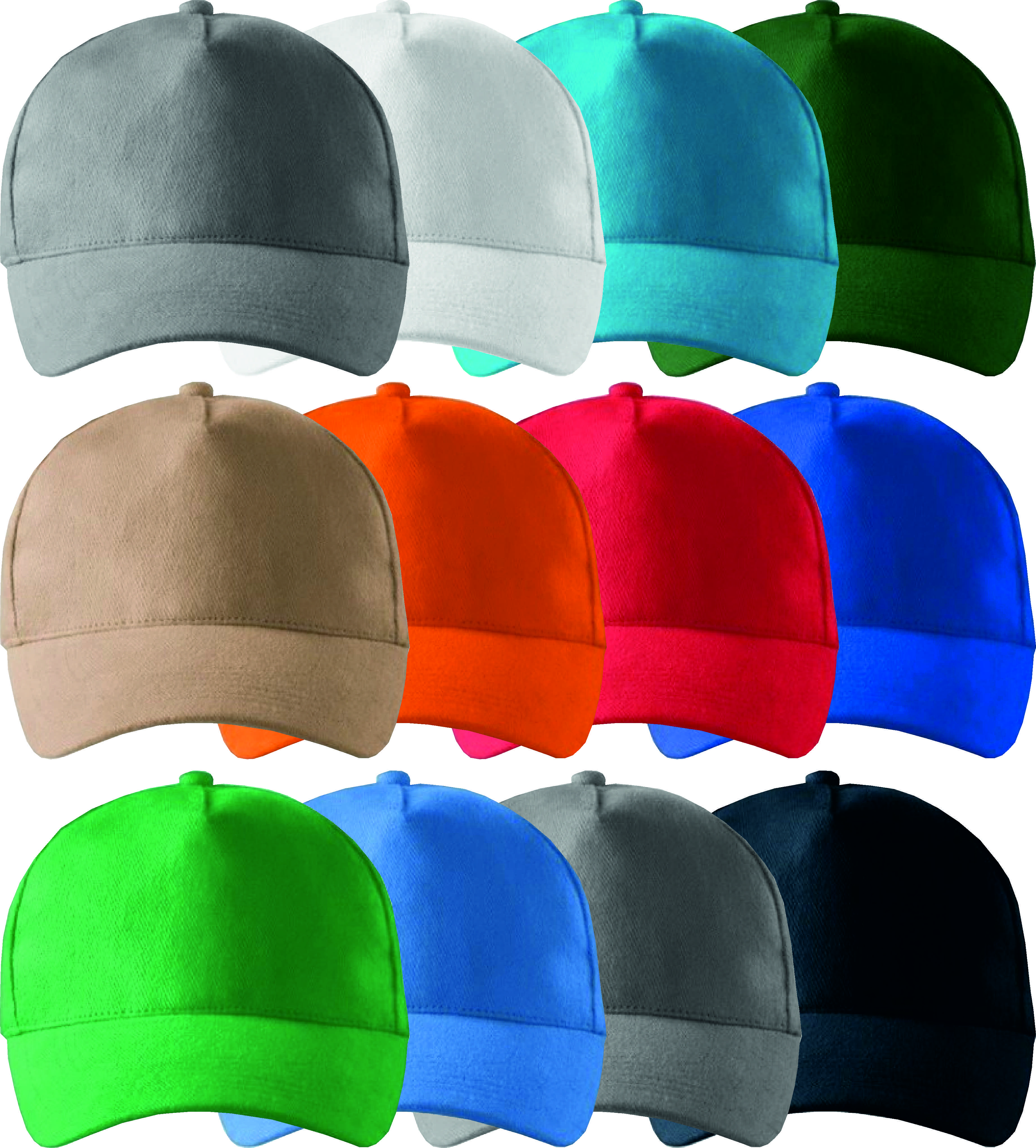 Dostępne kolory czapek : biały, granatowy, chabrowy, butelkowa zieleń, czerwony, piaskowy, pomarańczowy, lazurowy, zieleń trawy, szaroczarny melanż, turkus