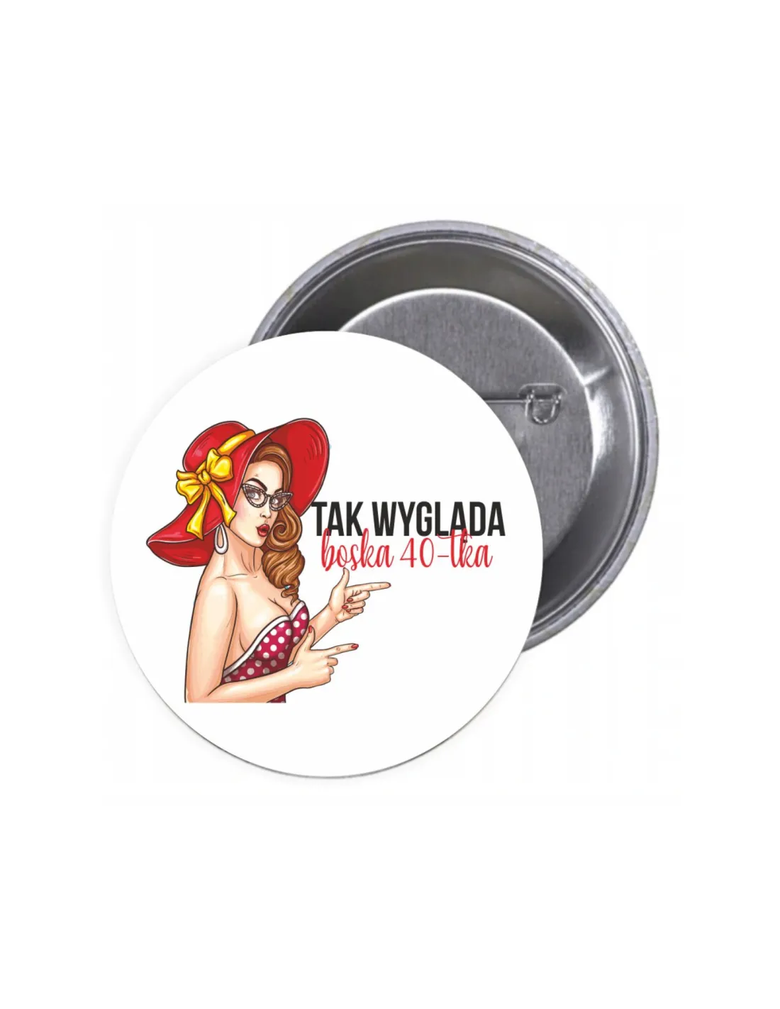 Przypinki buttony TAK WYGLĄDA BOSKA 40-TKA znaczki badziki z grafiką