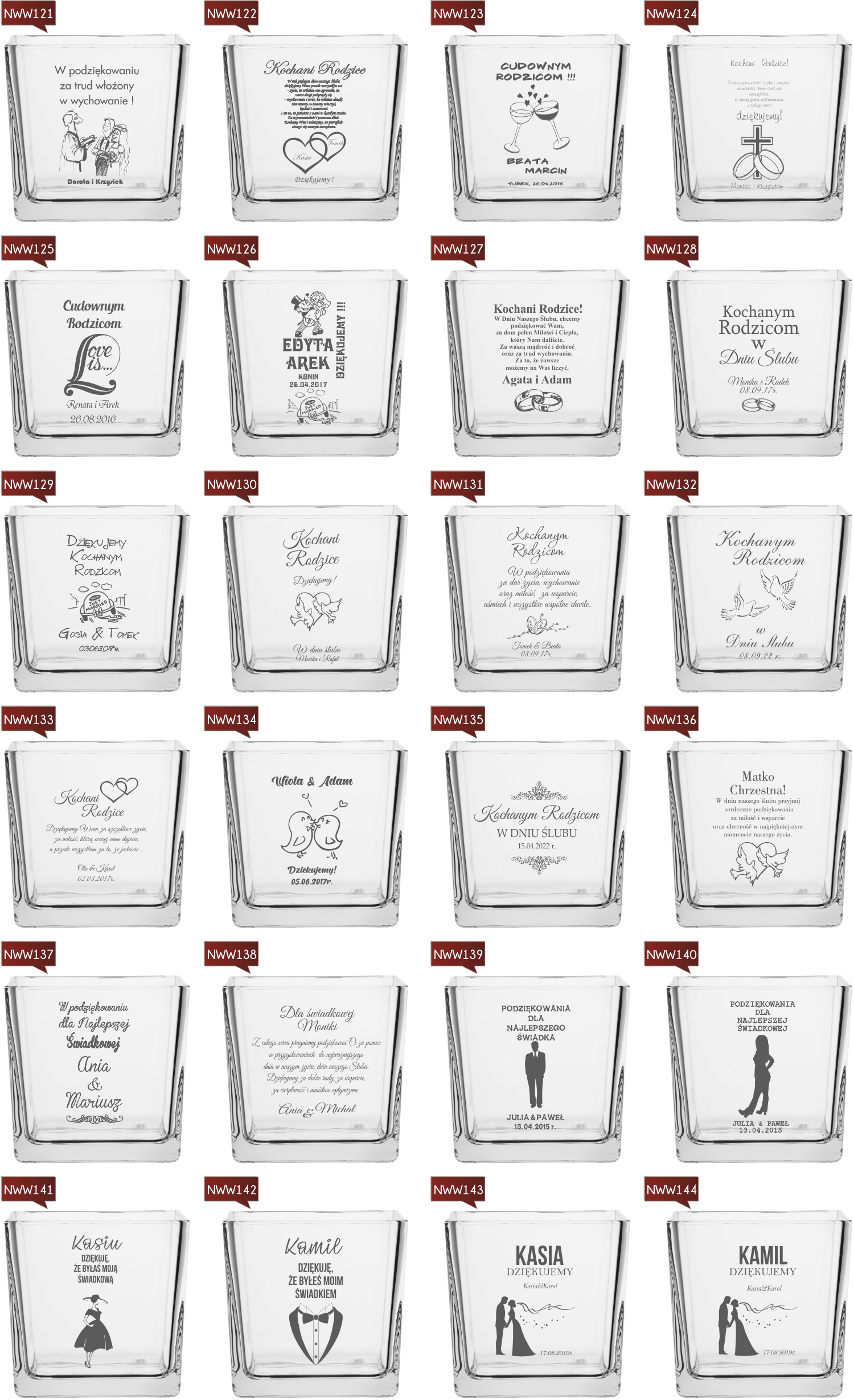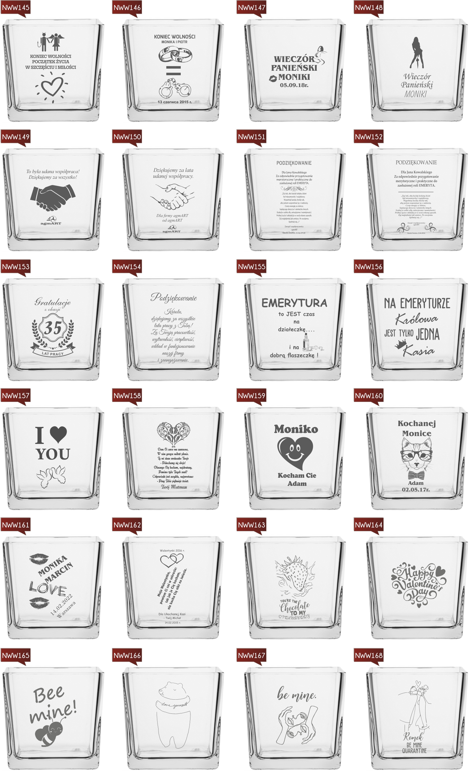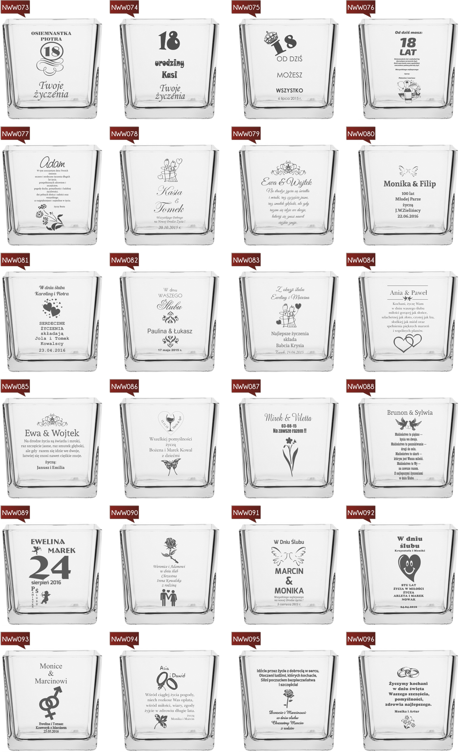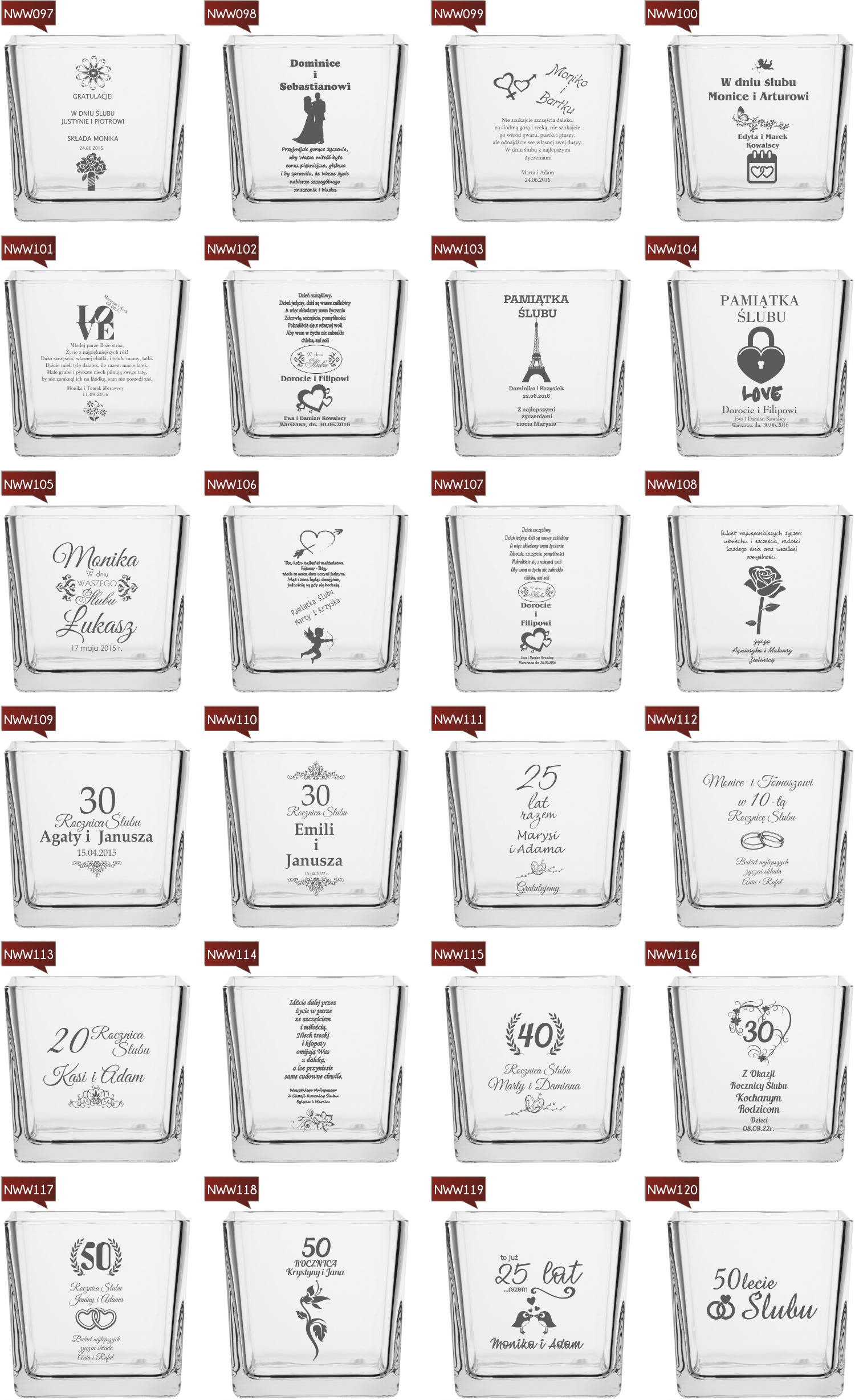 Przykładowe wzory wazonów z grawerem: