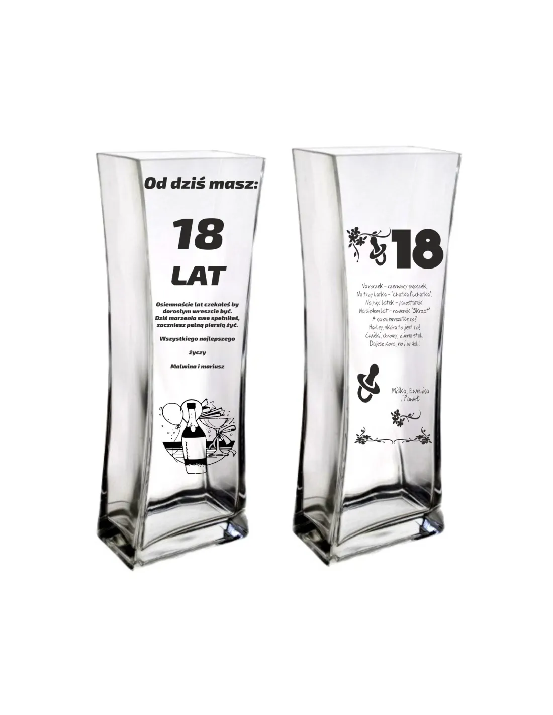 Wszystkie wazony wykonywane są na indywidualne zamówienie: wzór i napis wybrany przez Klienta.