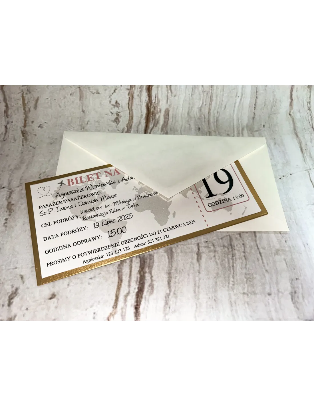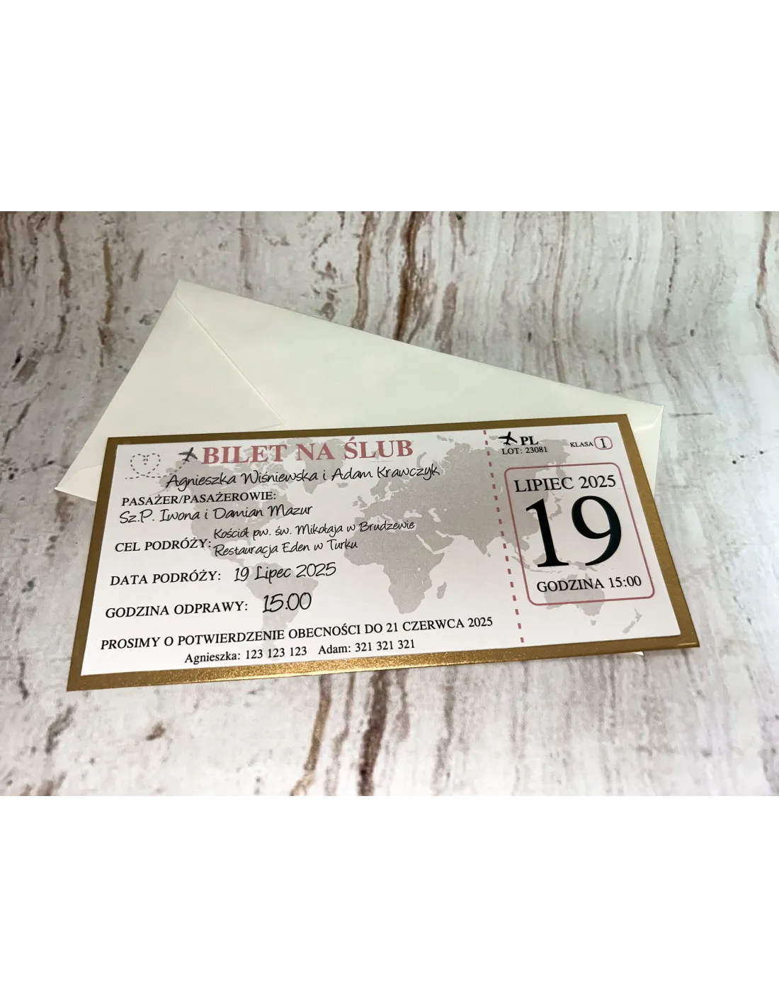 Zaproszenie BILET na ślub jednostronne  + PROJEKT GRATIS