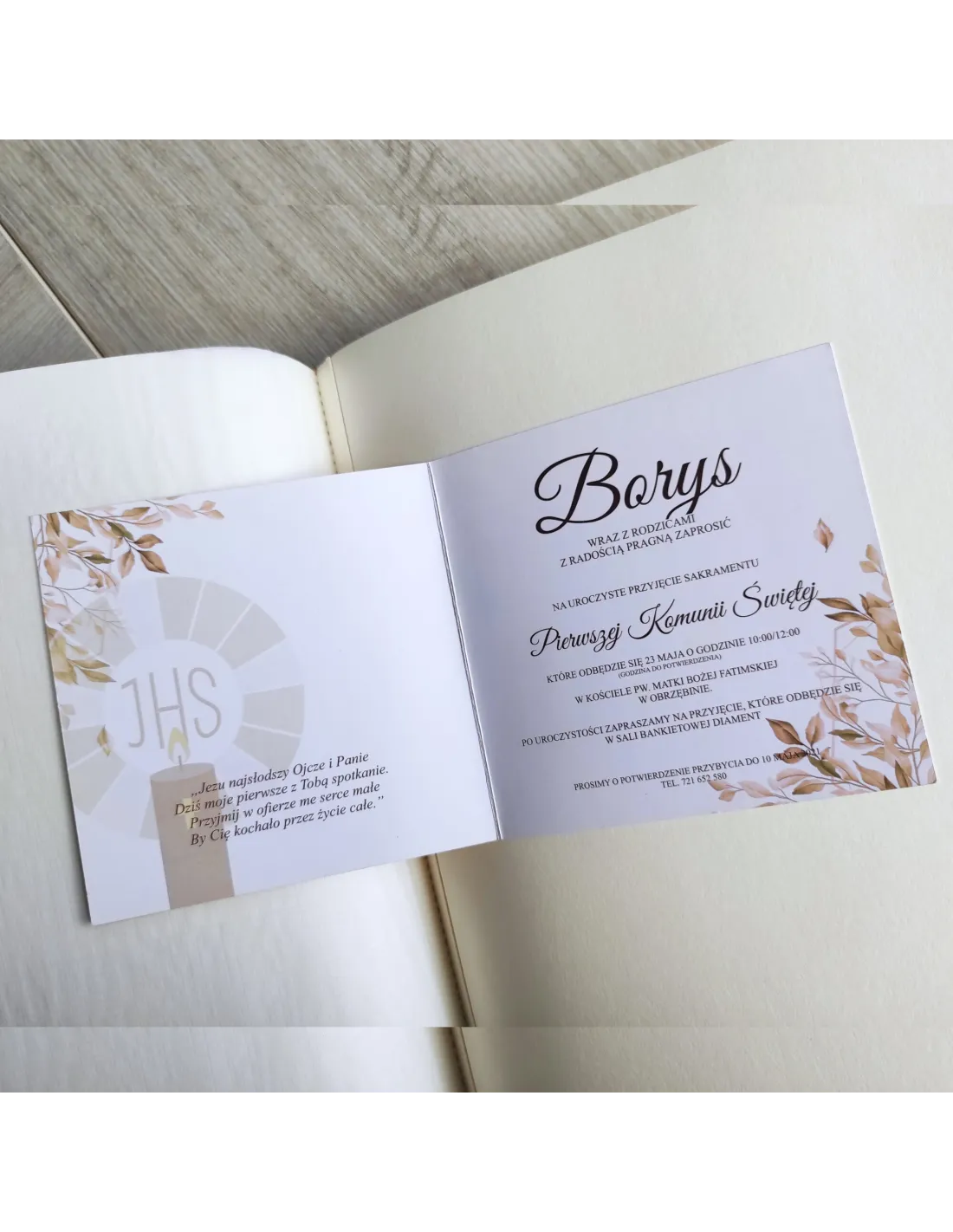 Personalizowane komunijne zaproszenie na pierwszą komunię świętą liście IHS PROJEKT GRATIS