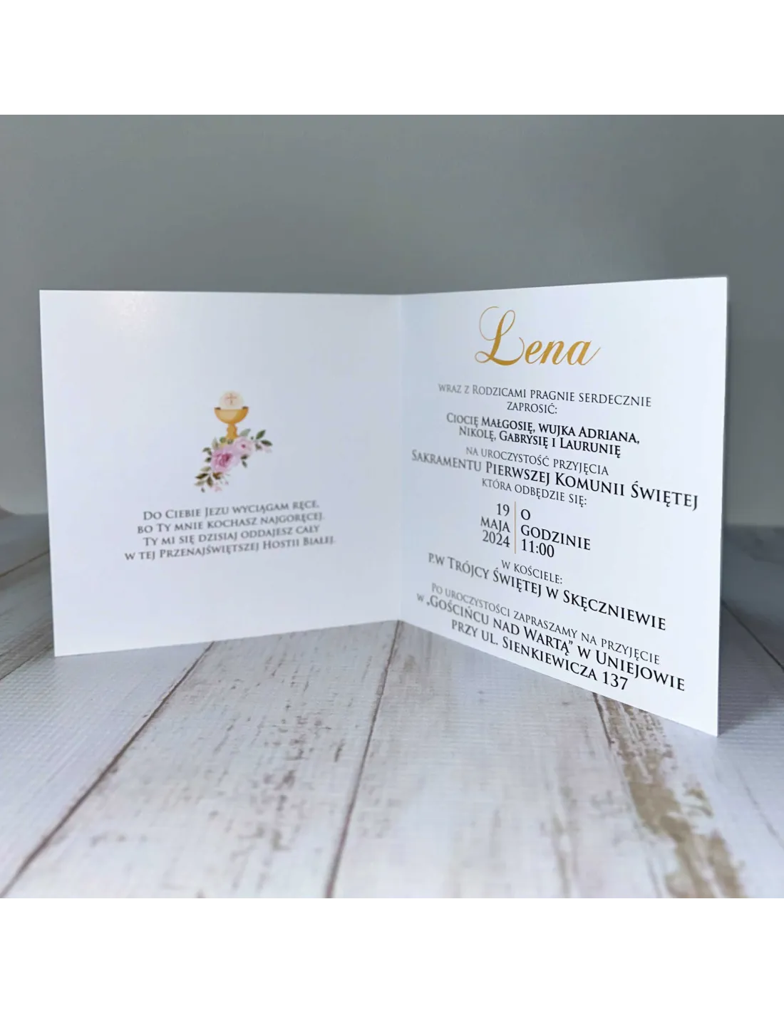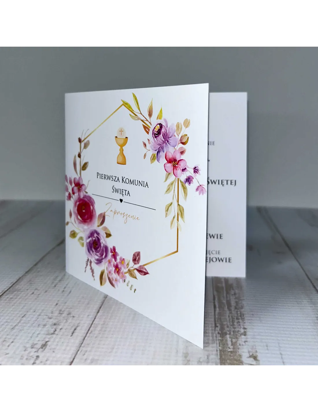 Zaproszenie na pierwszą komunię świętą zaproszenia komunijne motyw kwiatowy personalizacja + PROJEKT GRATIS