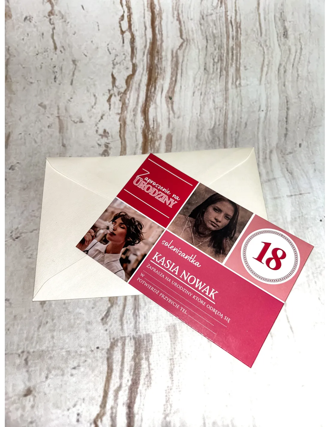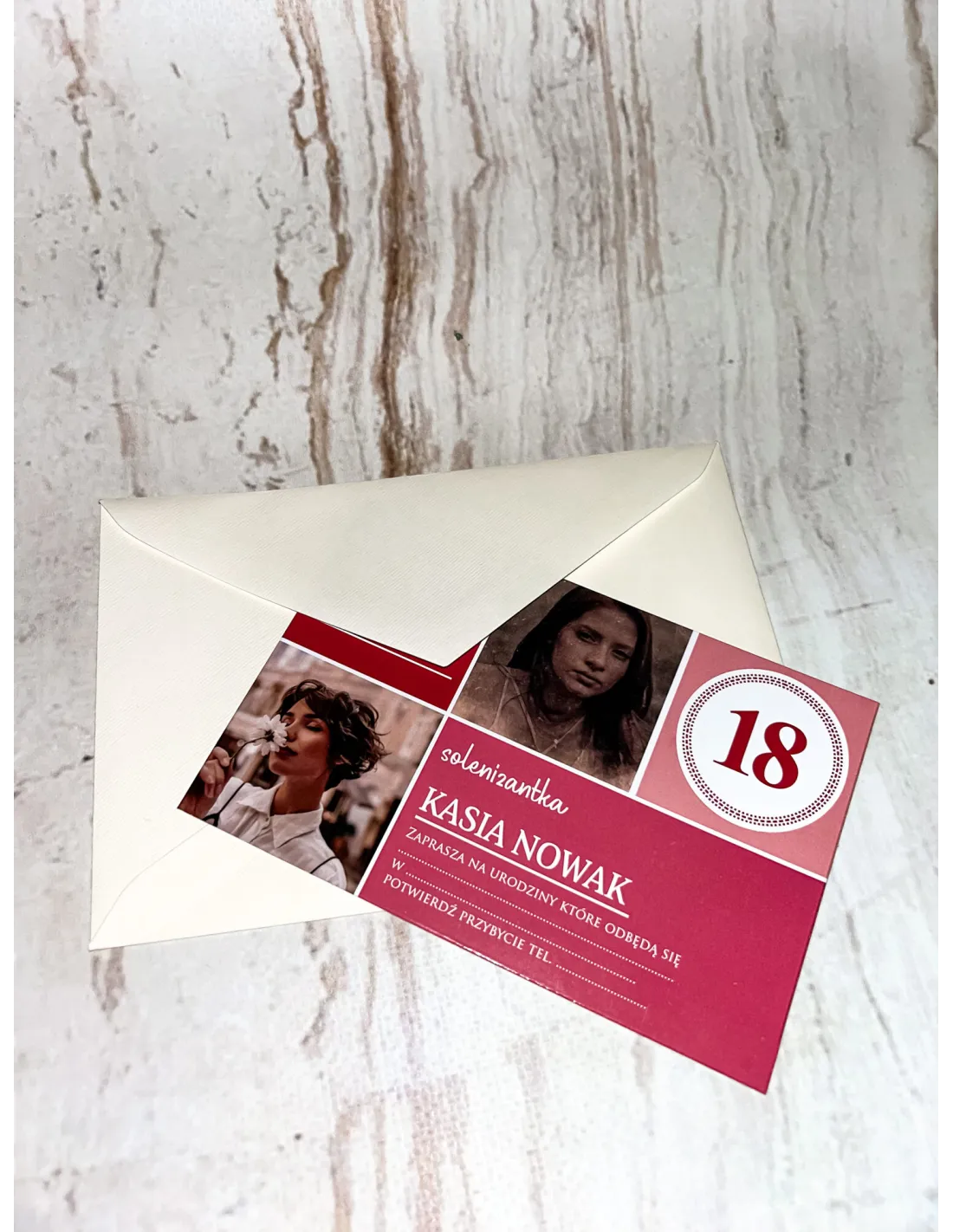Zaproszenie na 18 urodziny zaproszenia osiemnastkowe jednostronne Z TWOIM ZDJĘCIEM + PROJEKT GRATIS