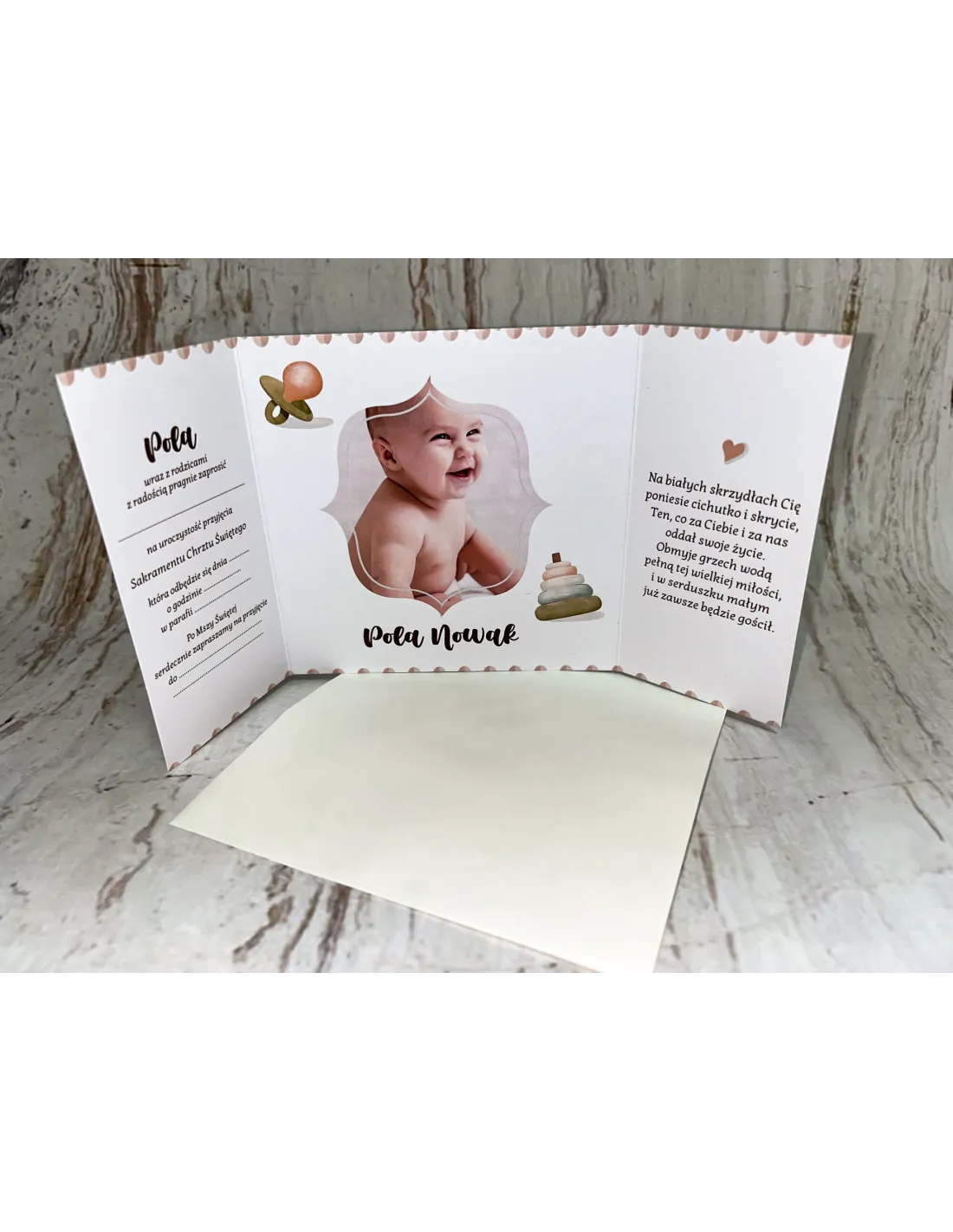 Zaproszenie na chrzest chrzciny składane ZE ZDJĘCIEM + POJEKT GRATIS