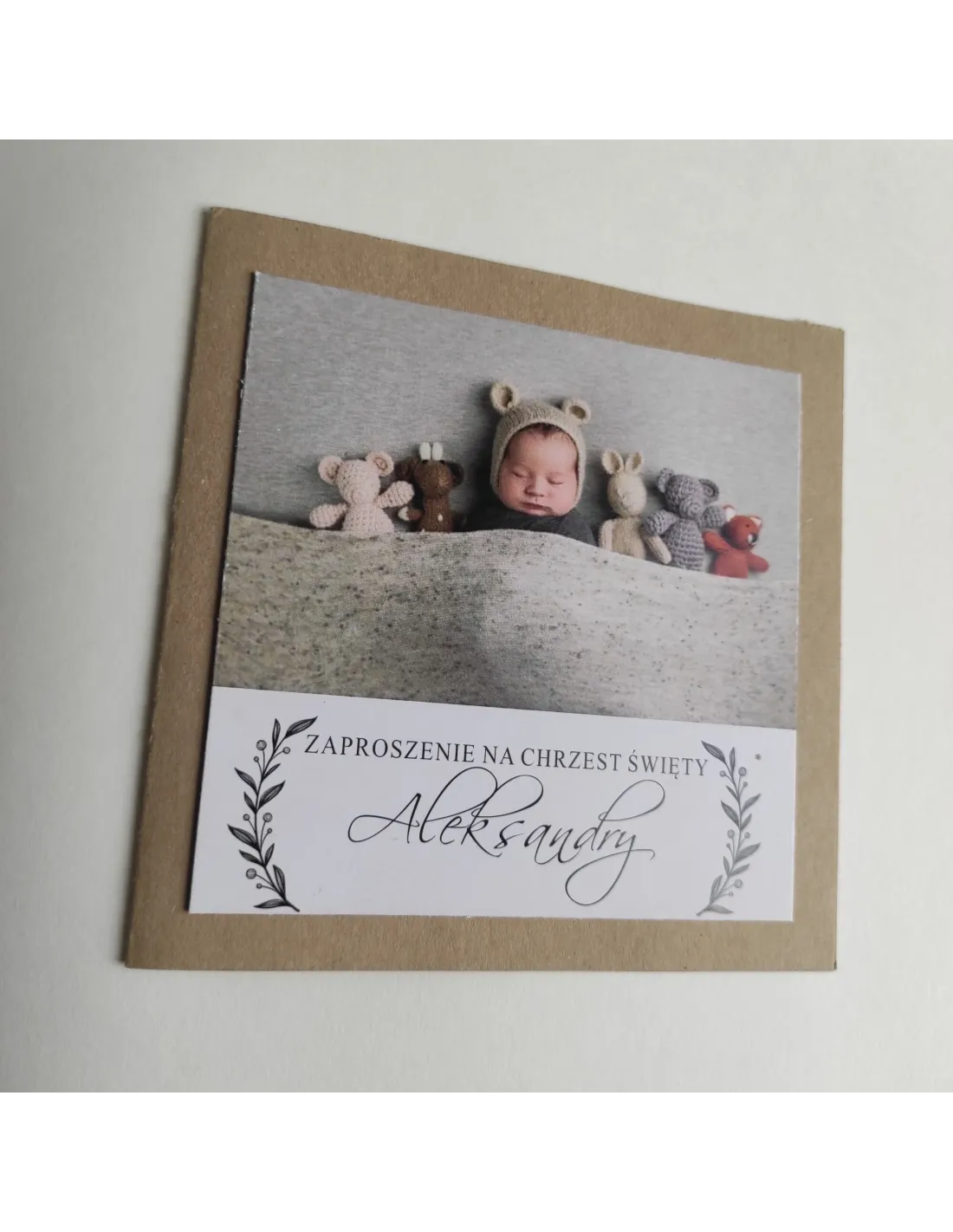 Personalizowane zaproszenie na chrzciny eko papier boho PROJEKT GRATIS