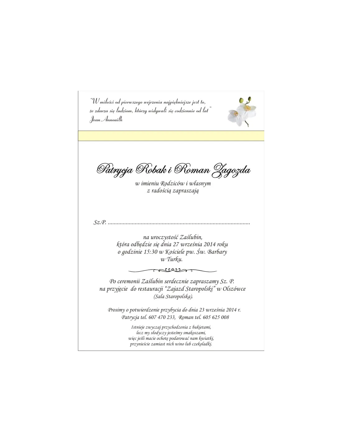 • cena zaproszenia obejmuje pełną personalizację z uzupełnieniem wszystkich danych poza nazwiskami gości
