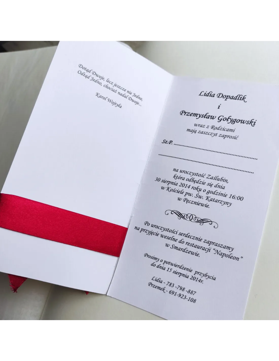 Personalizowane zaproszenie na Ślub Wesele czerwone z kokardą