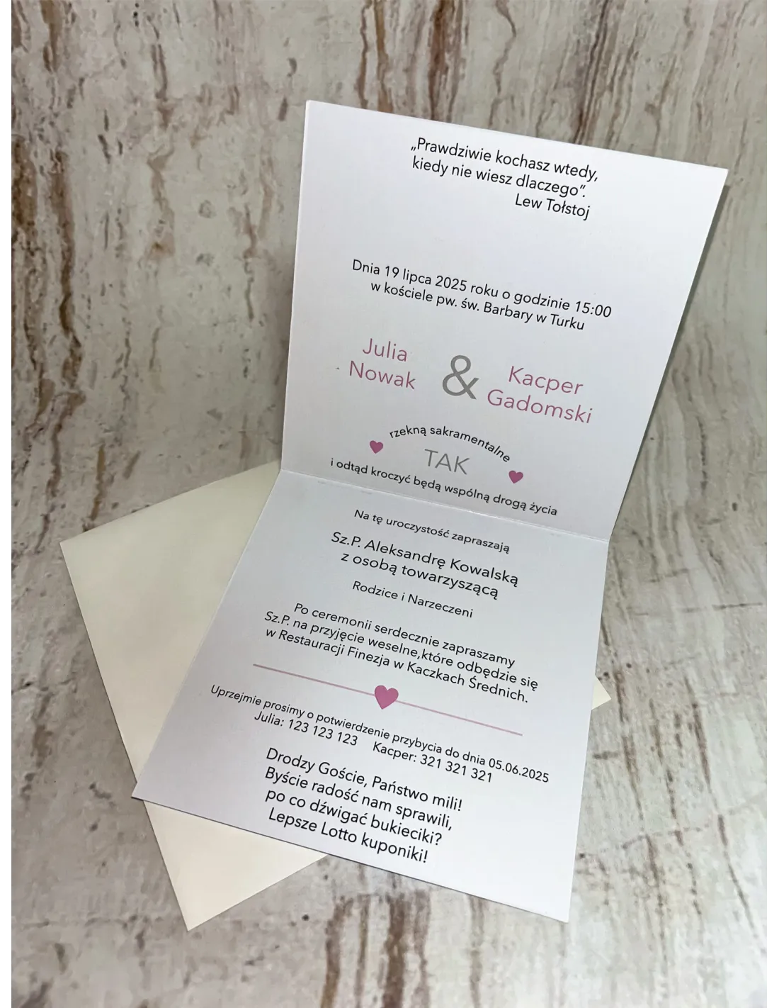 Zaproszenie na ślub ślubne weselne składane PROJEKT GRATIS
