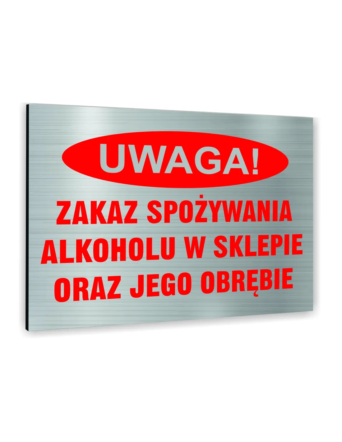 Znak Tablica informacyjna Dibond - UWAGA ZAKAZ SPOŻYWANIA ALKOHOLU W SKLEPIE ORAZ JEGO OBRĘBIE