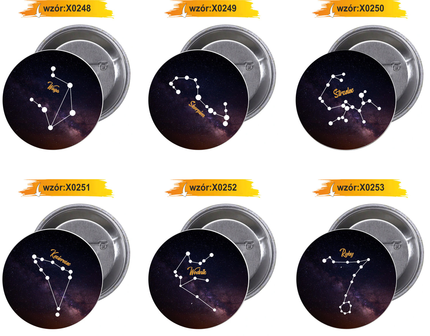 Przypinki buttony ZNAKI ZODIAKU WODNIK znaczki badziki z grafiką