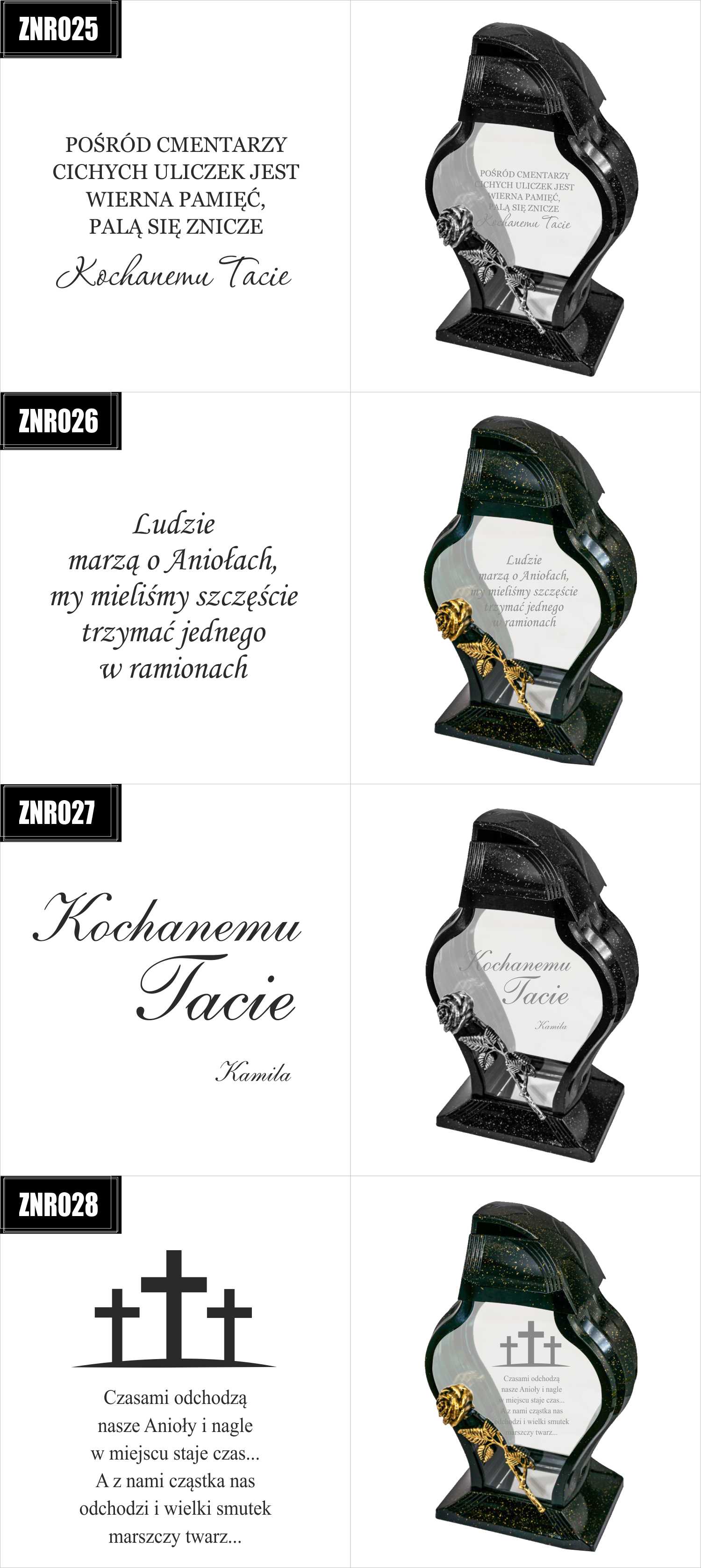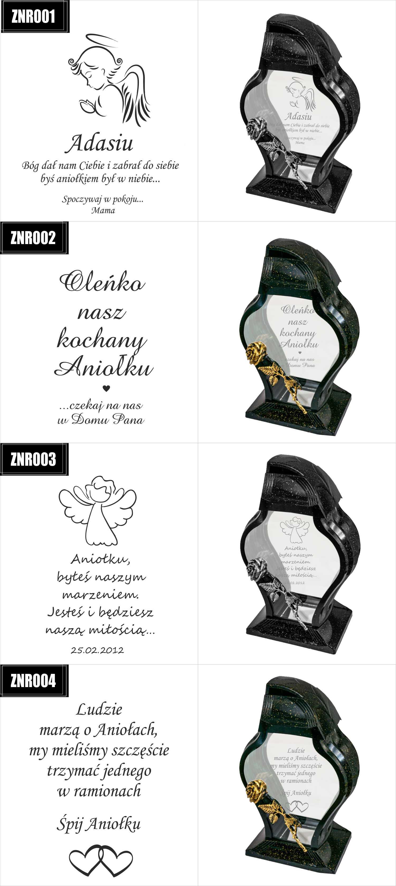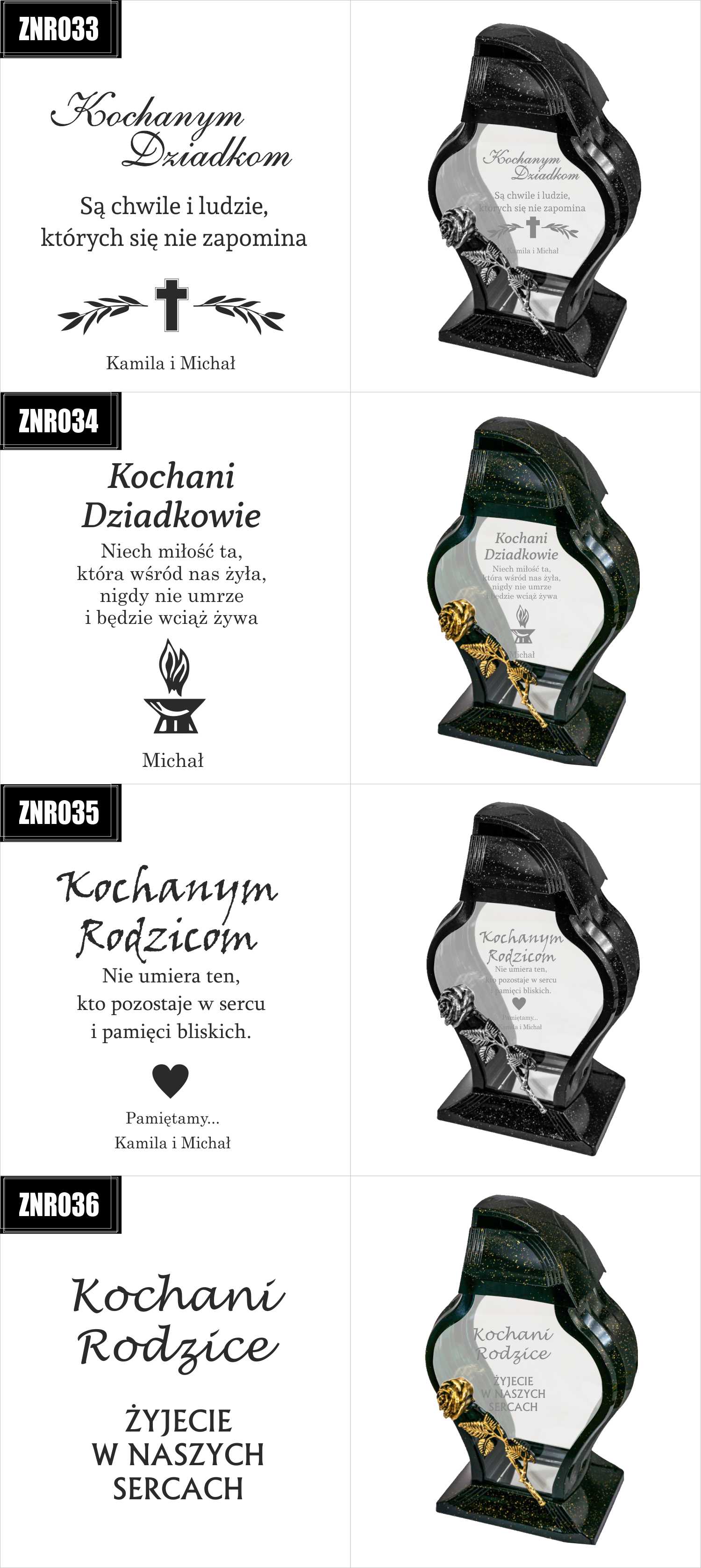 Dostępne wzory graweru na zniczach: