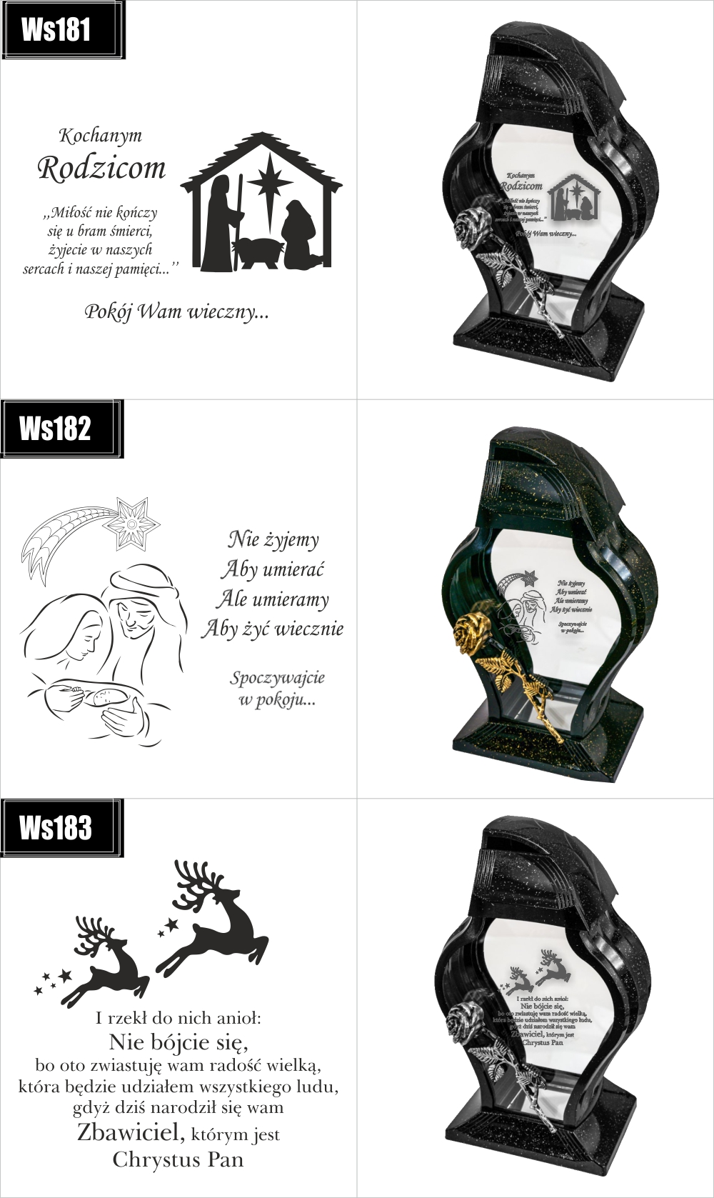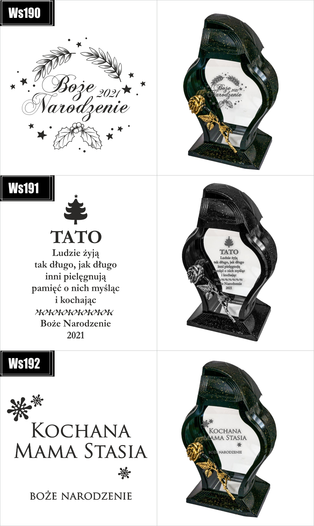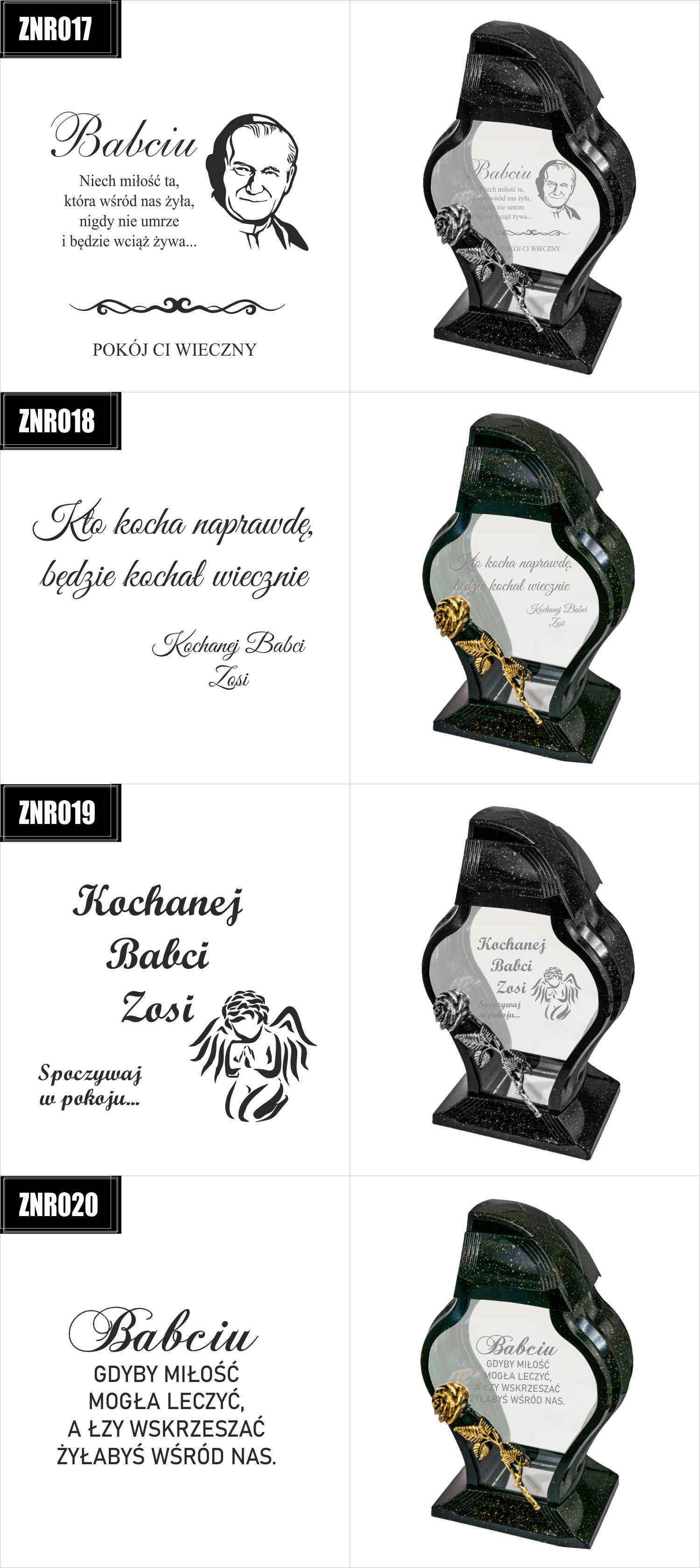 Dostępne wzory graweru na zniczach: