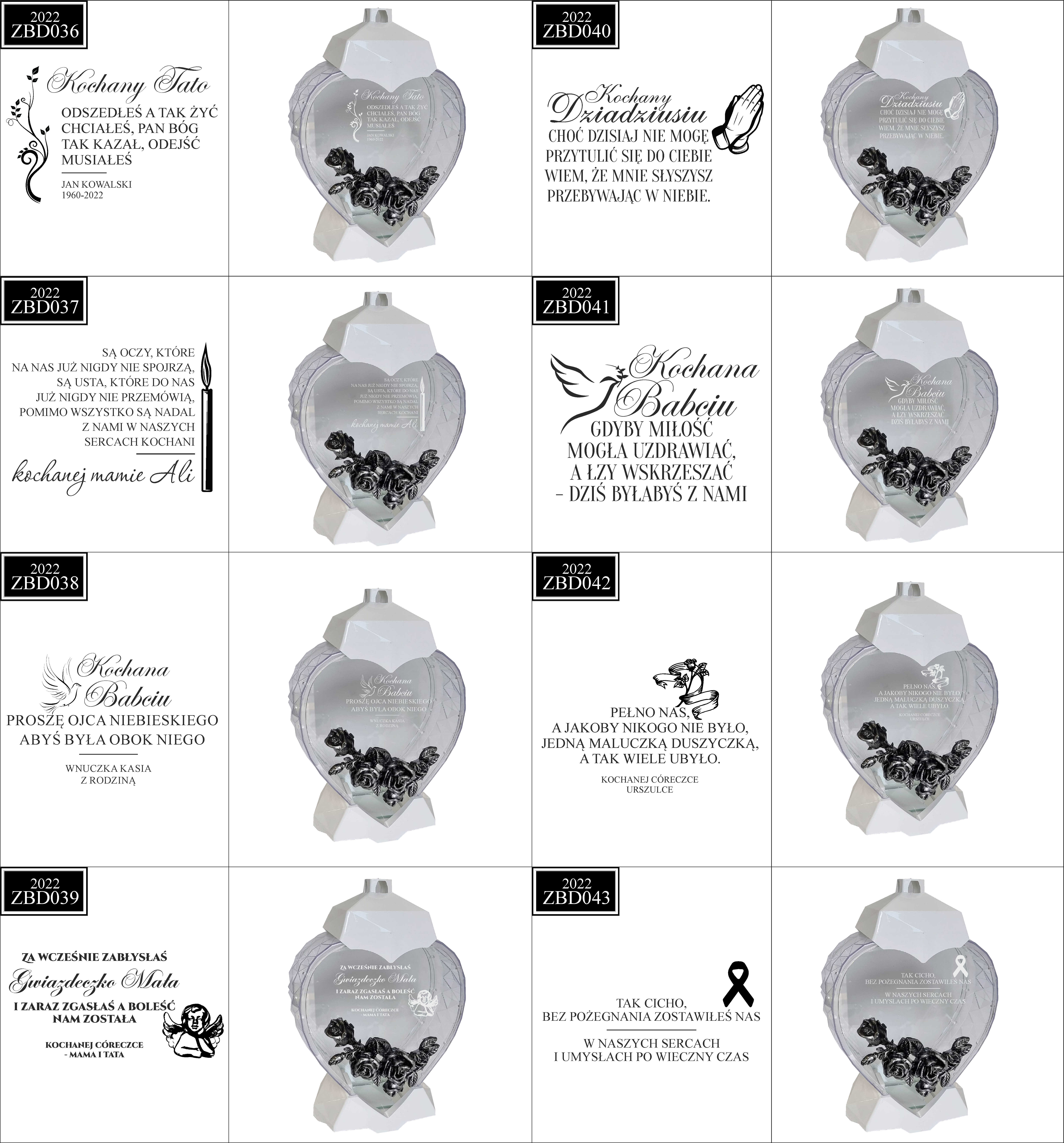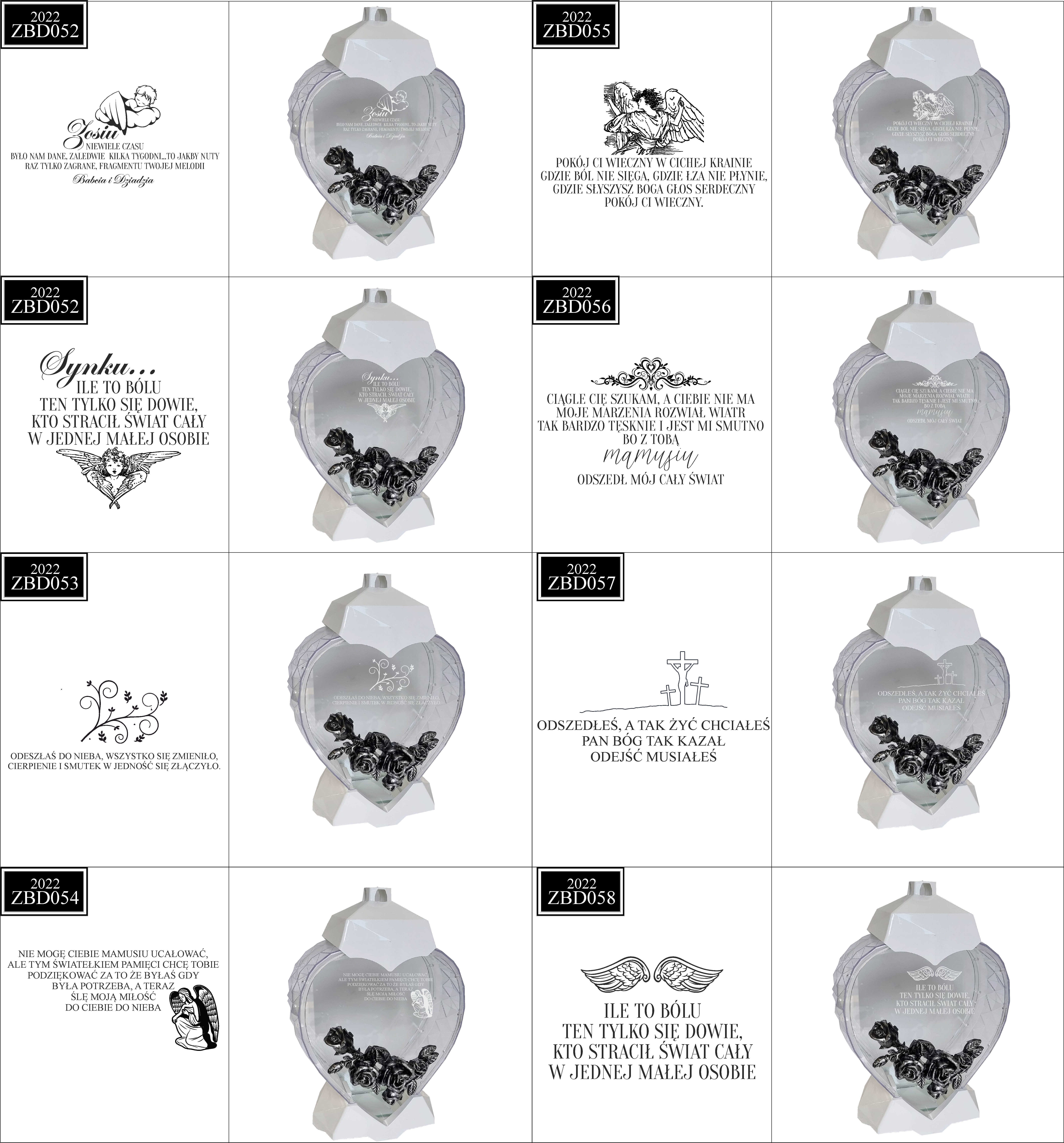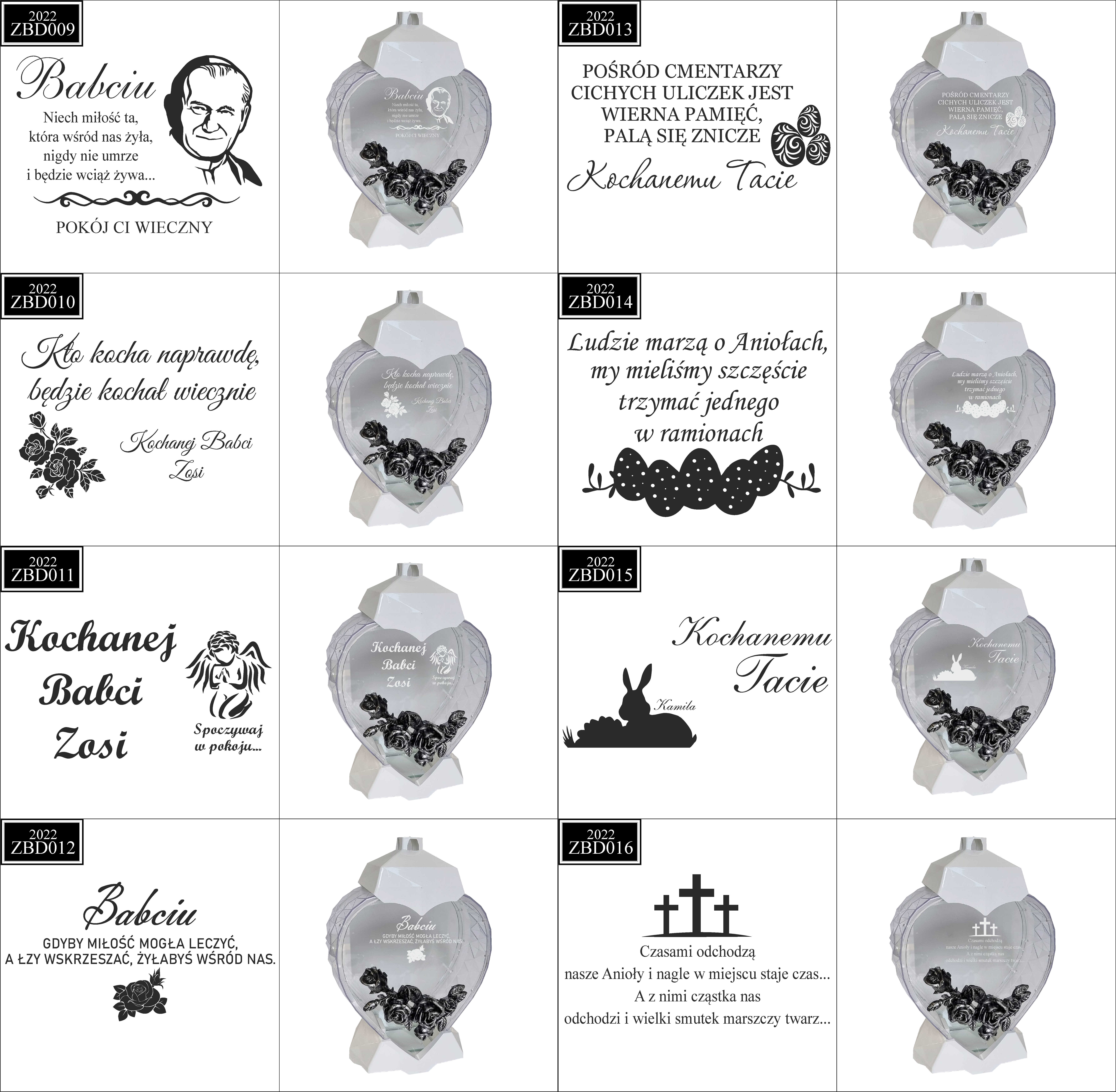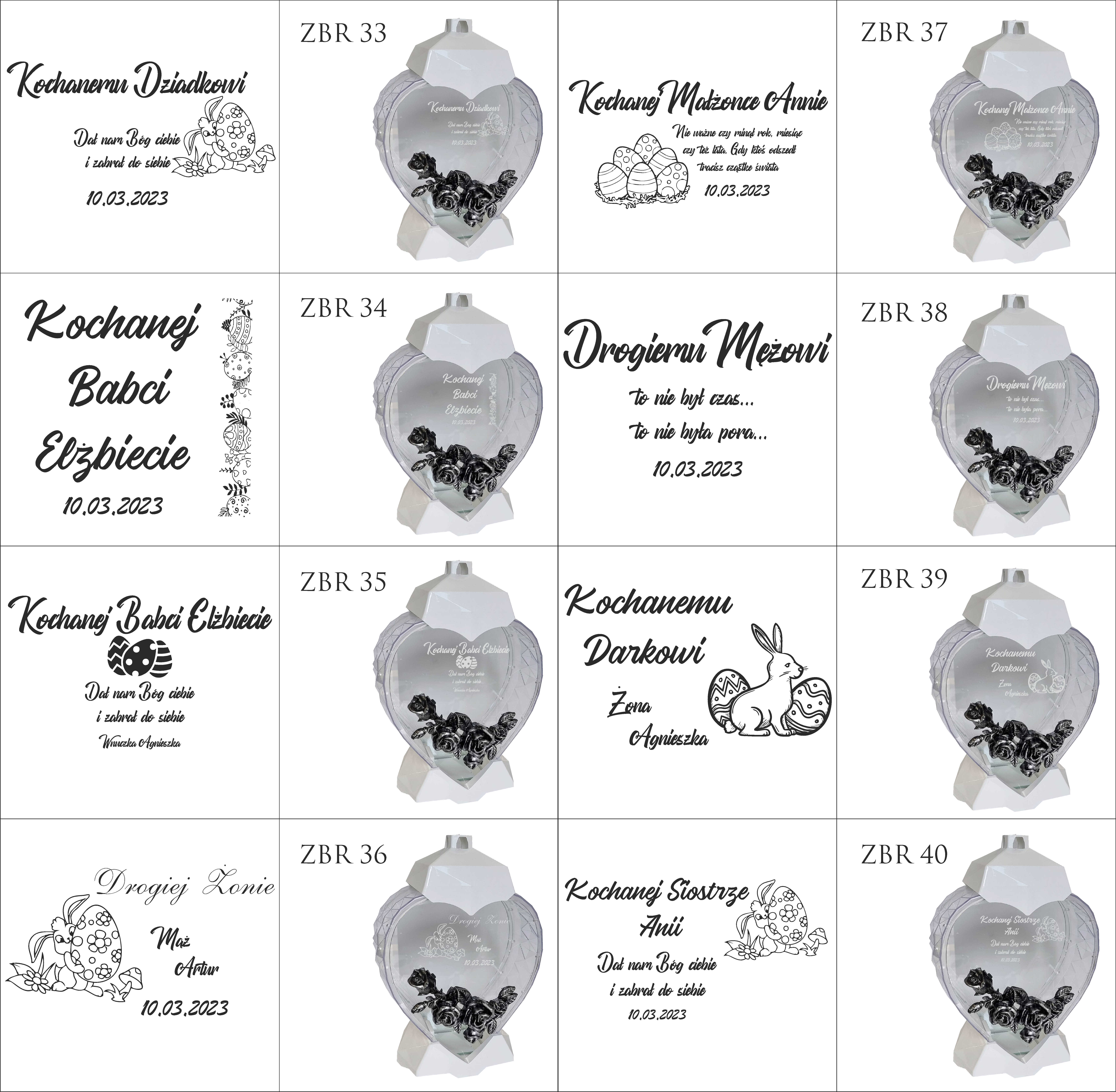 Po zakupie prosimy o podanie w wiadomości do sprzedającego symbolu wybranego wzoru oraz ewentualnego tekstu do zmiany. W przypadku braku tej informacji dokonujemy wyboru losowego.