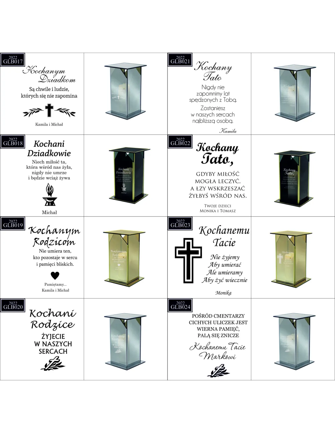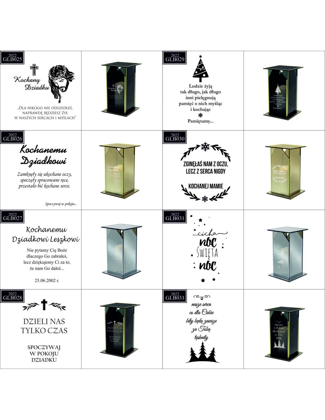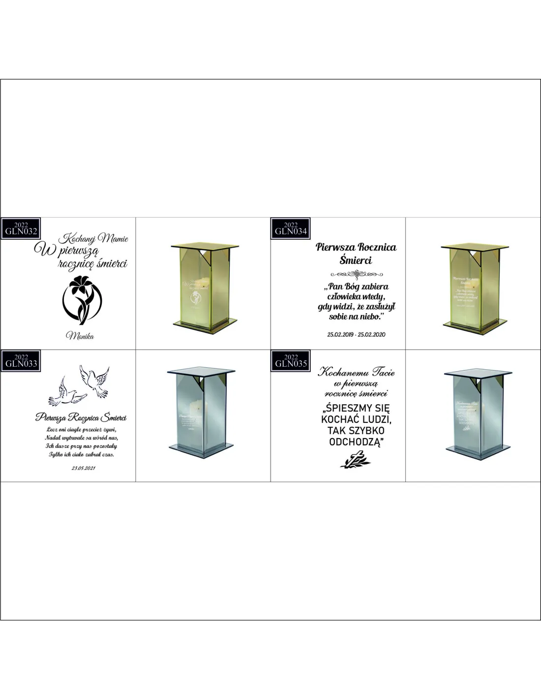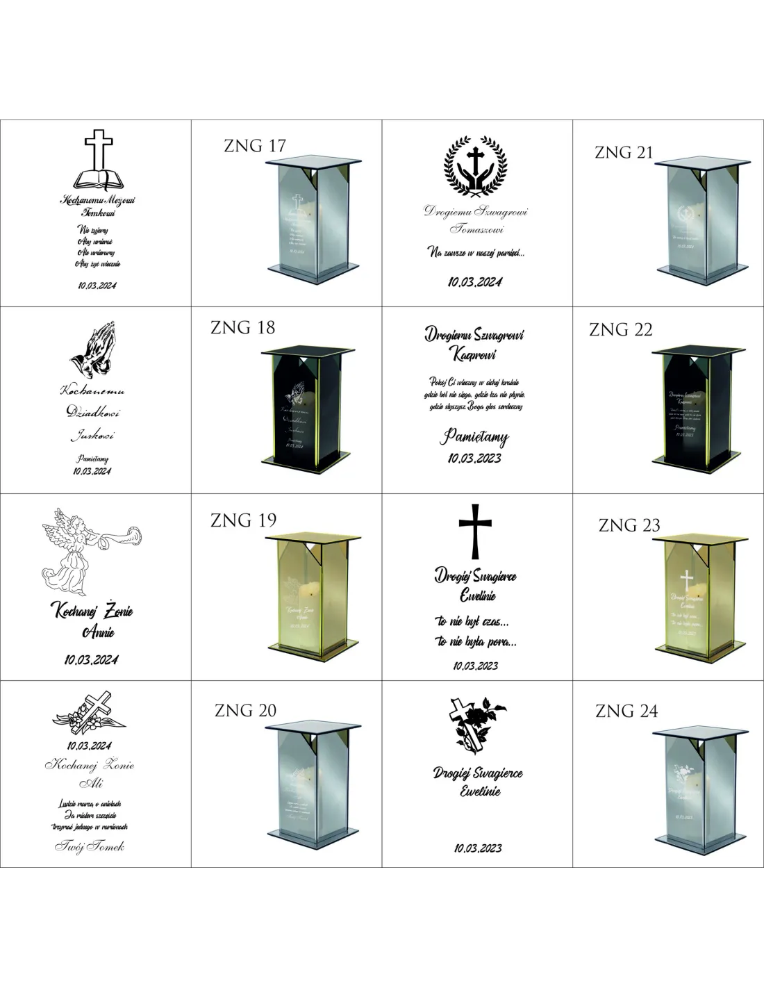 Dostępne wzory graweru na zniczach: